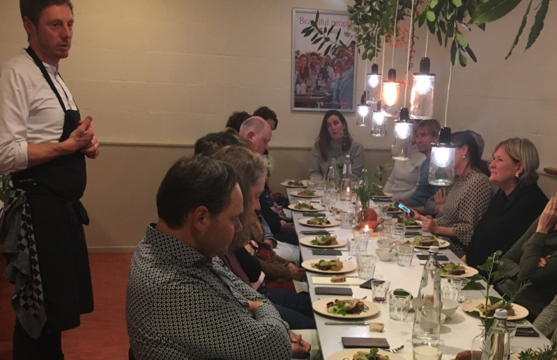 Het eerste diner vond plaats op 14 september bij De Beersche Hoeve, prachtig gelegen in Brabant, tussen eikenbossen en kleine beekjes. Op deze biodynamische boerderij worden groenten geteeld, groentezaden vermeerderd en nieuwe vrije groenterassen ontwikkeld. De centrale vraag van dit diner is ‘Bepaal jij zelf nog wat je eet?’ Het gesprek werd gemodereerd door Johan van de Gronden, filosoof, schrijver (Wijsgeer in het Wild: essays over mens en natuur), directievoorzitter KWF Kankerbestrijding en voormalig directeur van het Nederlandse Wereld Natuur Fonds (WNF).